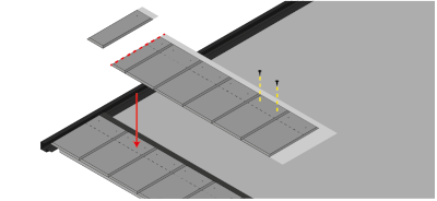 Система READYSLATE легко встановлюється за допомогою цвяхів. Для спрощення процесу монтажу всі окремі сланцеві плитки попередньо просвердлені. Після встановлення зніміть захисну плівку.