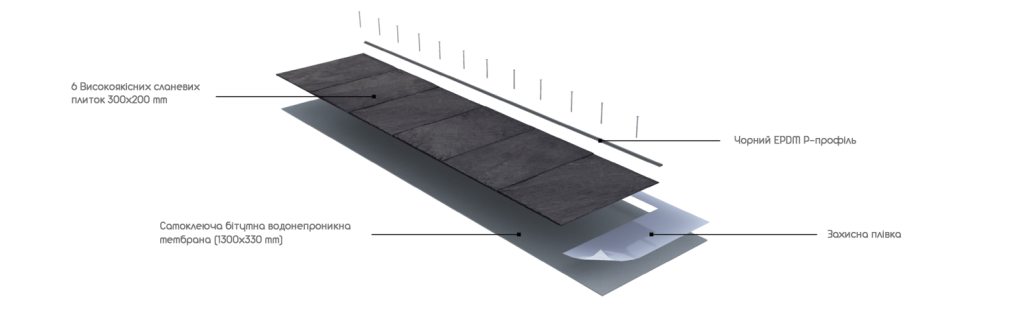| Верхній шар | 6 плиток сланцю | 300 х 200 |